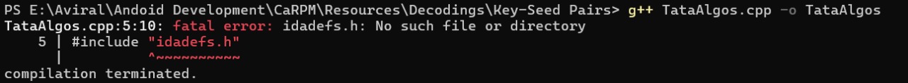 N/A | 32.3 KB | The image shows a compilation error related to a missing header file: "idadefs.h". | N/A | Bumper Bracket | gpt-4o-2024-08-06 | 3,308 | 2.52s | May 12, 2025 14:17 | View Edit |